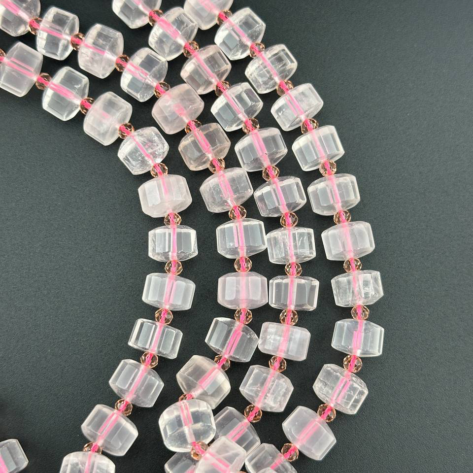 Бусины Кварц розовый А граненый размеры 3мм 4мм длина 39см